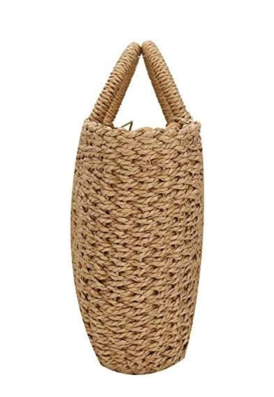 حقيبة يد مصنوعة من القش الطبيعي بتصميم جذاب وعصري.