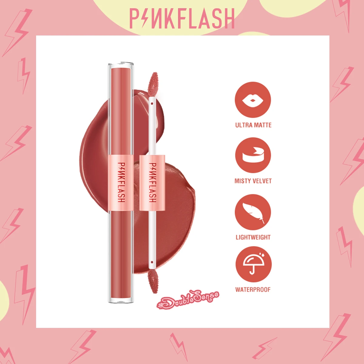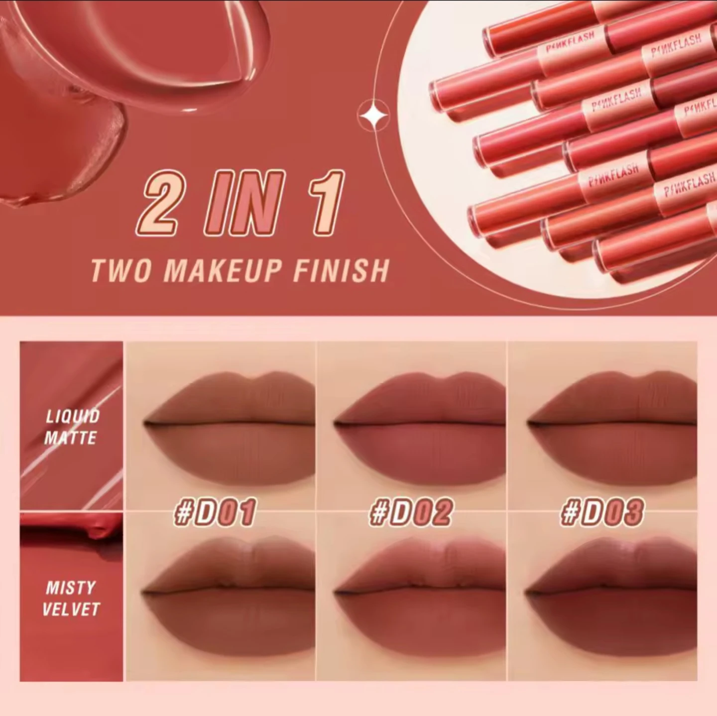 روج سائل ثنائي برأسين أحدهما بلون مطفي والاخر بملمس مخملي - Double Lip Gloss