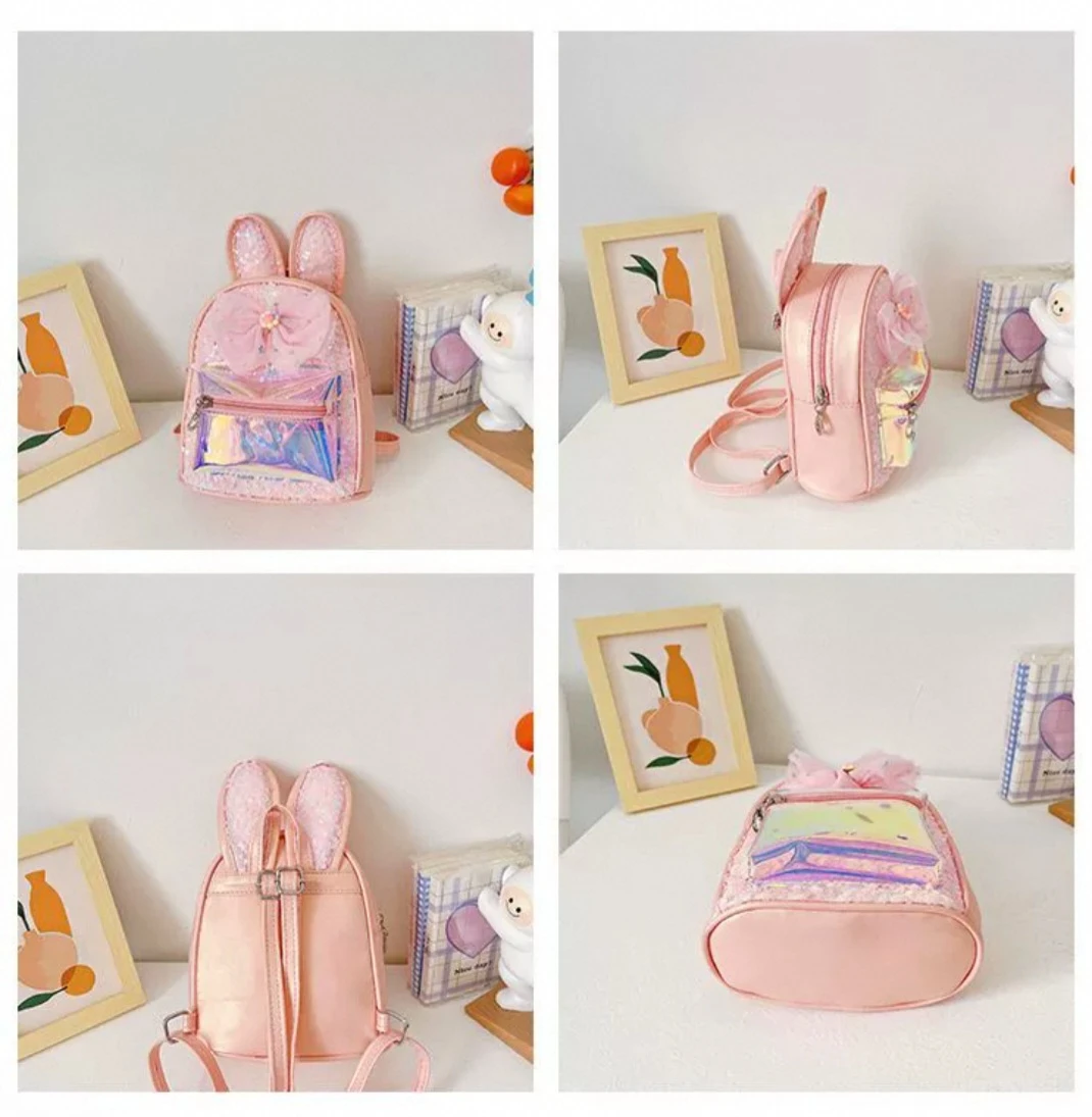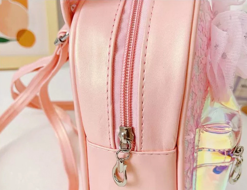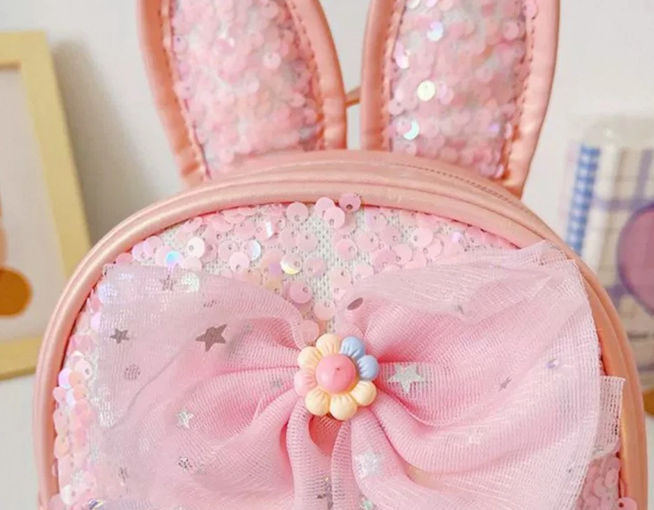 حقيبه كتف للبنات الصغار باللون السماوي بفيونكه والخرز الملون